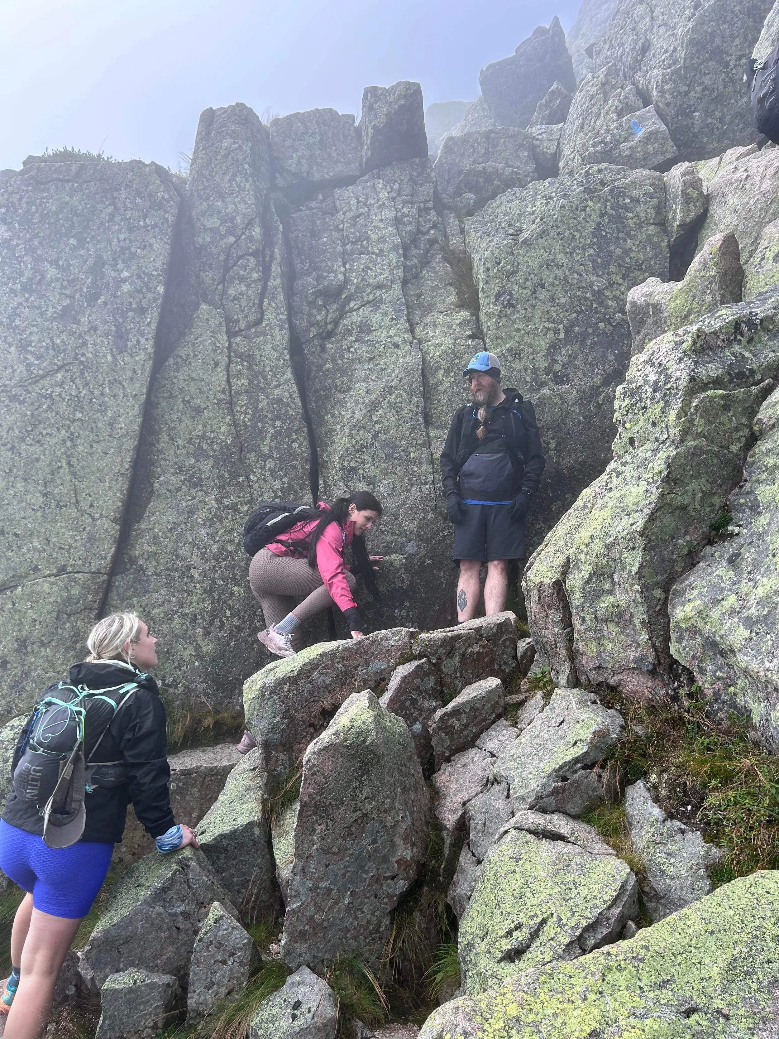 It was well before 6 a.m. when we pulled up to the Roaring Brook Campground trailhead. We all sluggishly exited the vehicles to gear up in our boots and packs. After a last few sips of caffeine and warm-up stretches, we made our way to the trailhead of Chimney Pond Trail to sign in at the ranger station, which is required. As we made our way uphill gradually, the mix of nerves and exhaustion made it difficult for me to engage in conversation. My mind and body were still waking up from a restless night in my tent.